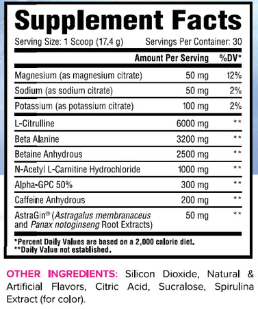 Maximizes performance and endurance with clinically studied doses of L-Citrulline, Beta Alanine, and Betaine Anhydro...