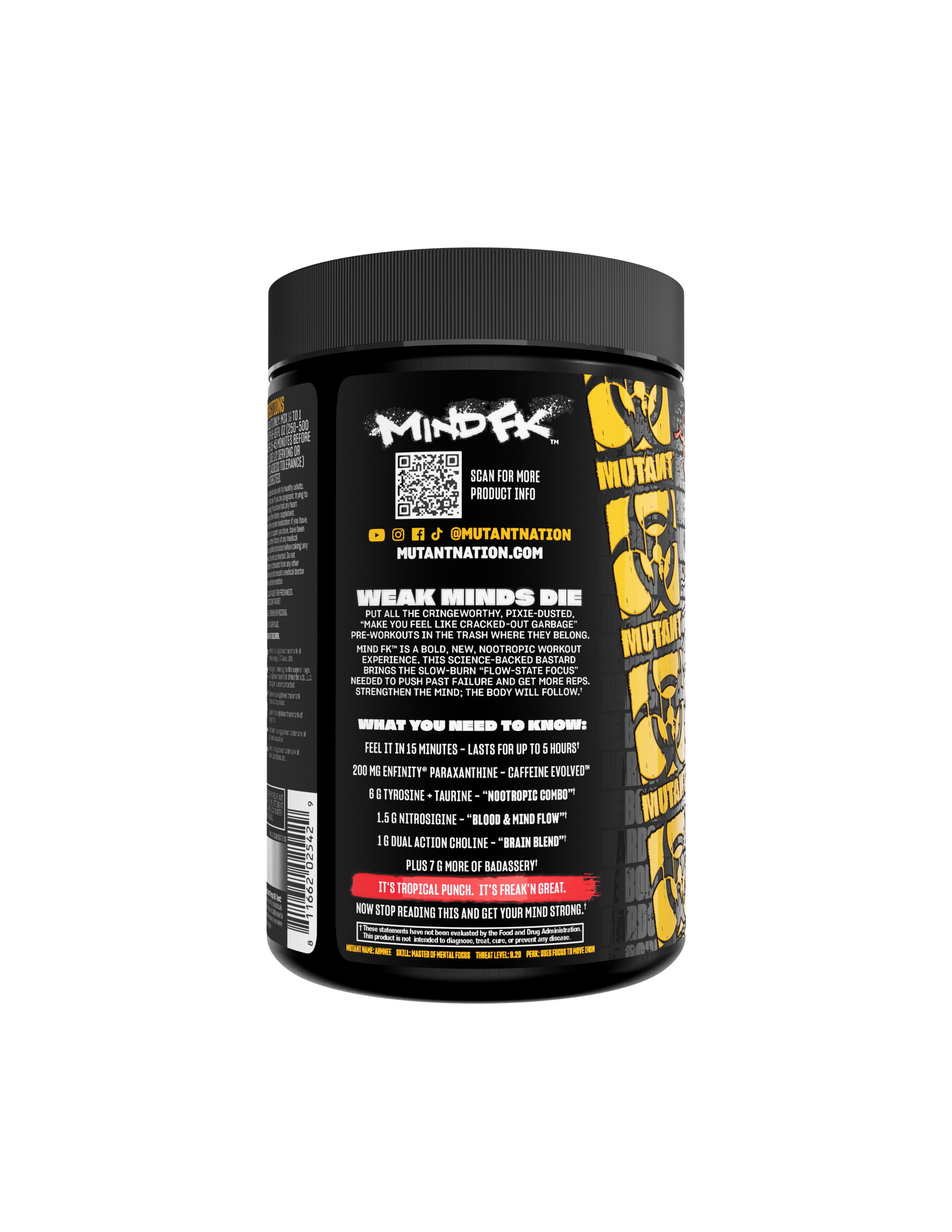 MUTANT® MIND FK™️ is a bold, new, nootropic workout experience. This science-backed bastard brings the slow-burn “flow-state focus” needed to push past failure and get more reps.