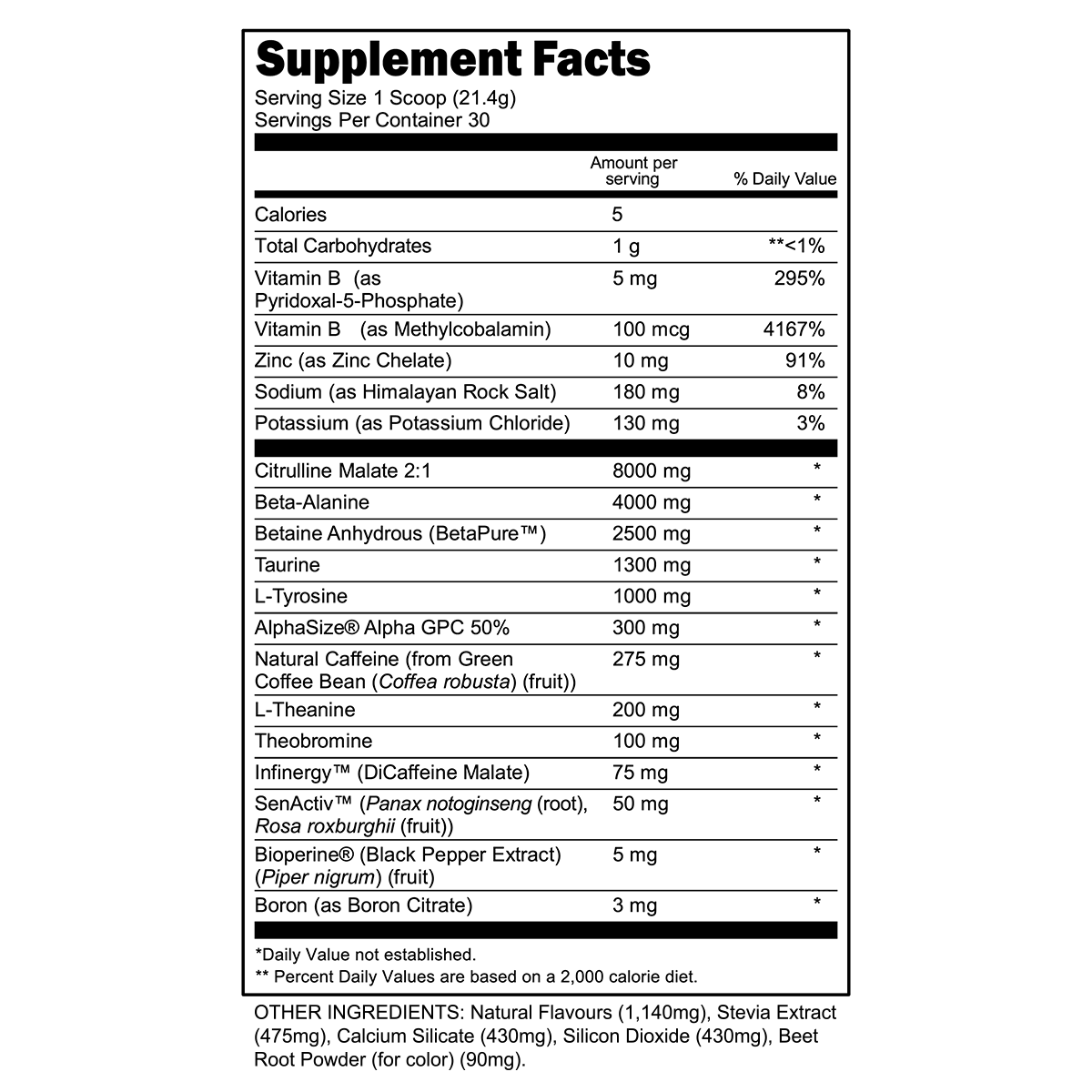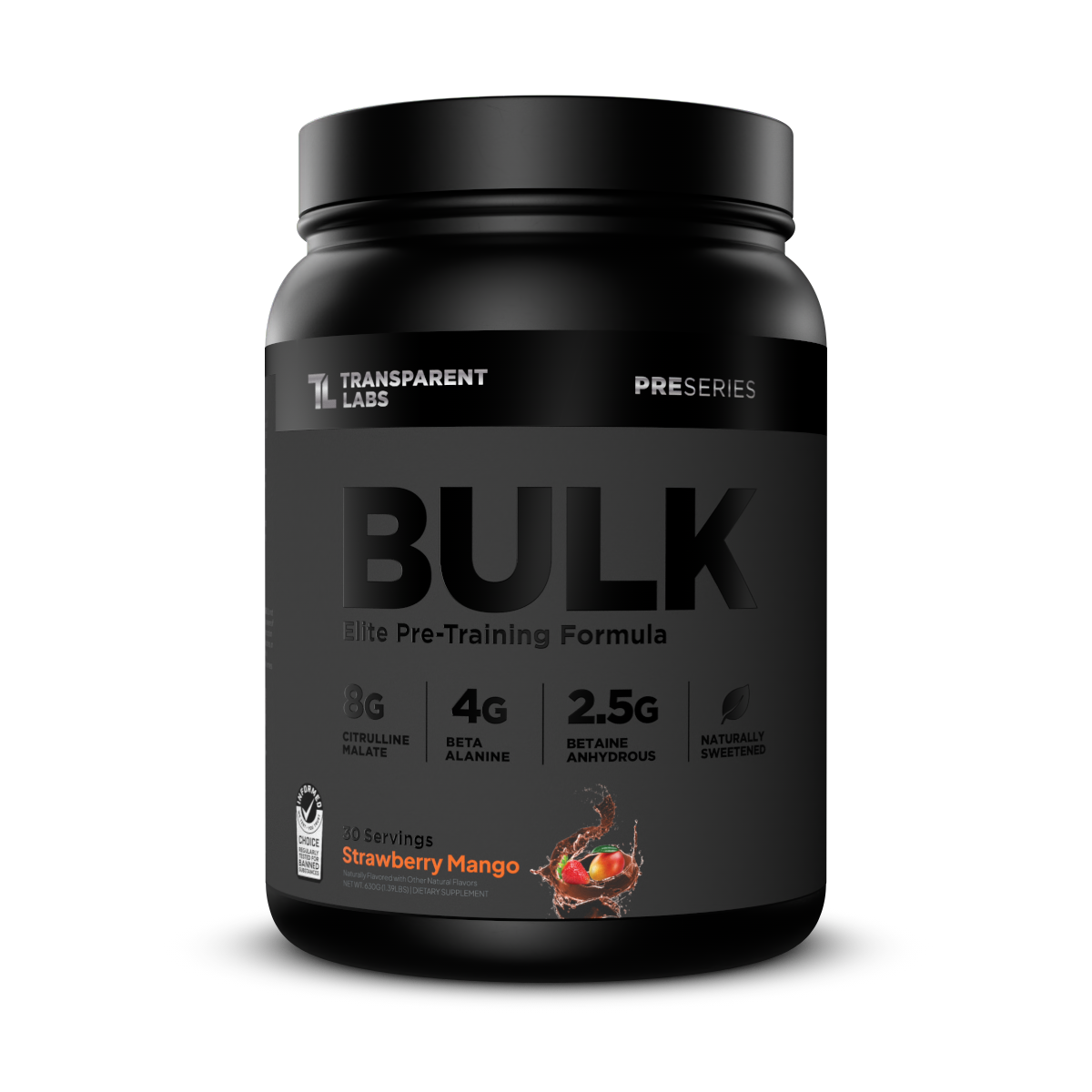 Bulk Black from Transparent Labs is made for stim lovers. This clinically dosed pre-workout delivers extra “pep” with more than 17 grams of proven nitric oxide boosters, hard-hitting nootropics, natural testosterone-supporting ingredients, and muscle fortifiers—including l-citrulline malate, beta-alanine, betaine anhydrous, and sustained-release caffeine.
