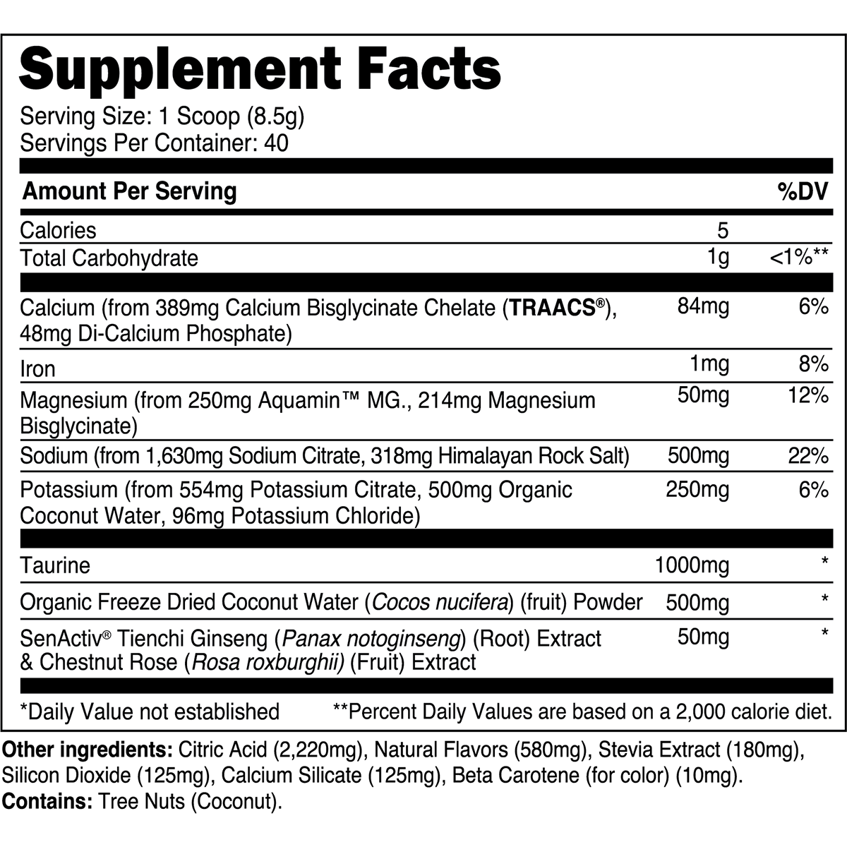 Stay hydrated throughout the day and during training with help from Hydrate. This refreshing electrolyte formula features bioavailable minerals, taurine, SenActiv, and coconut powder without added sugars, artificial coloring, or artificial sweeteners for a clean hydration boost to your daily water intake. Frequently Asked Questions: What is taurine? Taurine is a naturally occurring sulfonic acid that supports cellular hydration. What is SenActiv? SenActiv is a patented, clinically studied adaptogen complex that supports athletic performance and muscle recovery after intense exercise. What does “bioavailable” mean? When something is bioavailable, it means that it’s more readily absorbed and used by the body.